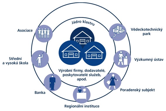 Během posledních desetiletí se koncepce klastrů stala ústřední myšlenkou konkurenceschopnosti a hospodářského rozvoje ve světě. "Klastr je regionálně koncentrovaná síť navzájem propojených společností, specializovaných dodavatelů, poskytovatelů služeb, firem v příbuzných oborech a přidružených institucí a organizací, jejichž kooperační vazby mají potenciál k upevnění a zvýšení jejich konkurenceschopnosti na národní i globální úrovni." Hlavními společnými znaky klastru je: